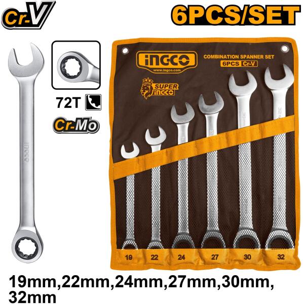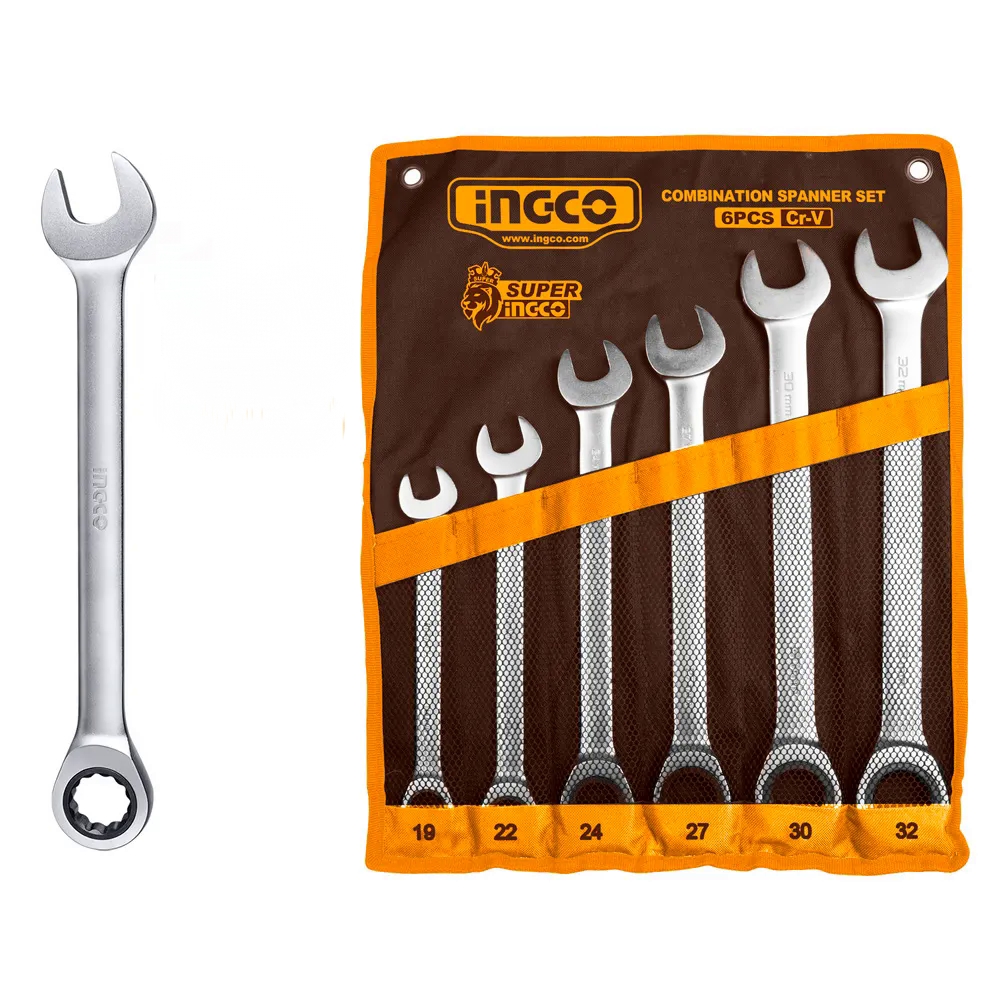 Ingco Ratchet spanner set size:19-32mm